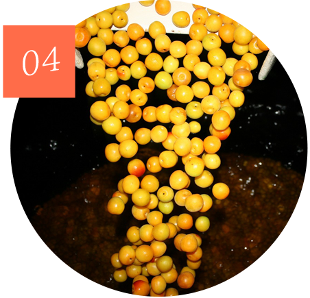 選別された梅をたっぷりの流水でやさしく丁寧に洗浄し、異物を取り除きます。