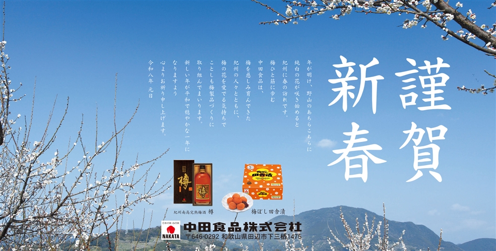 梅一筋宣言! 私たちは知っている、 梅の魅力やおいしさを。 私たちは信じている、 梅の未来や可能性を。 梅一筋宣言! 梅にひたむきに 向き合いながら、 私たちが出来ること。 産地と共に成長しよう、 より多くの人々へ 梅の価値を届けよう。 梅一筋宣言! 私たちに、そして 梅に出来ることは もっとある。 だからこそ私たちは、 これまでもこれからも 梅一筋宣言! トピックスTOPICS 明けましておめでとうございます。本年もよろしくお願い申し上げます。 年末年始休業のお知らせ 「子育て応援企業」として認定されました 第24回「わかやま環境賞」を受賞 中田食品公式コミュニティサイト『うめニティ』がオープン 2025年日本国際博覧会(大阪・関西万博)への出店と店舗の方向性・販売メニューについて 『紀州梅の里なかた』あおい店、定休日変更のお知らせ 11月2日~3日開催、『SHIGA KOMECON 2024』に出店へ ウメディアUMEDIA 2025/12/02 歴史・文化 梅の花が「縁起がいい」と言われる理由とは?日本人が愛した吉祥の象徴 豆知識 梅の花 2025/11/11 梅の魅力 梅は果物?それとも野菜?意外と知らない植物学の話 豆知識 2025/10/17 暮らし・健康 梅を使った簡単おかずレシピ特集 レシピ 2025/09/30 暮らし・健康梅の魅力 梅を炊飯器で楽しむ!梅ご飯・甘露煮・ジュースの簡単レシピ レシピ もっと見る ニュースNEWS 2026/01/01お知らせ明けましておめでとうございます。本年もよろしくお願い申し上げます。 2025/12/01お知らせ年末年始休業のお知らせ 2025/07/03お知らせ企業活動「子育て応援企業」として認定されました 2025/06/30お知らせ企業活動第24回「わかやま環境賞」を受賞 2025/06/06お知らせ企業活動中田食品公式コミュニティサイト『うめニティ』がオープン 「ニュース」についてもっと見る プレスリリースPRESS RELEASE 2025/04/092025年日本国際博覧会(大阪・関西万博)への出店と店舗の方向性・販売メニューの発表 2025/02/14バレンタインに甘いおにぎり!?昨年に続き「おにぎりサミット」にて発表した特別な「バレンタインおにぎり」を2月14日に限定発売 2025/02/03果汁たっぷりのフルーティーな味わい 「とろこく苺姫 苺たっぷり梅酒」新発売 2024/02/29「TGC 和歌山 2024」のケータリングブースで展示した「梅damonoタワー」を本社直売店にて期間限定で一般公開へ! 2024/02/08梅干しメーカーと梅干し専門店が共同開発!「おにぎりサミット」にて発表したバレンタインデーに贈る特別な「バレンタインおにぎり」を2月9日より限定販売 プレスリリースをもっと見る 梅製品の製造工程 梅酒工房の工程 ご家庭での梅干し作り ご家庭でも簡単 和歌山の銘品をご紹介 時短!簡単!梅レシピ